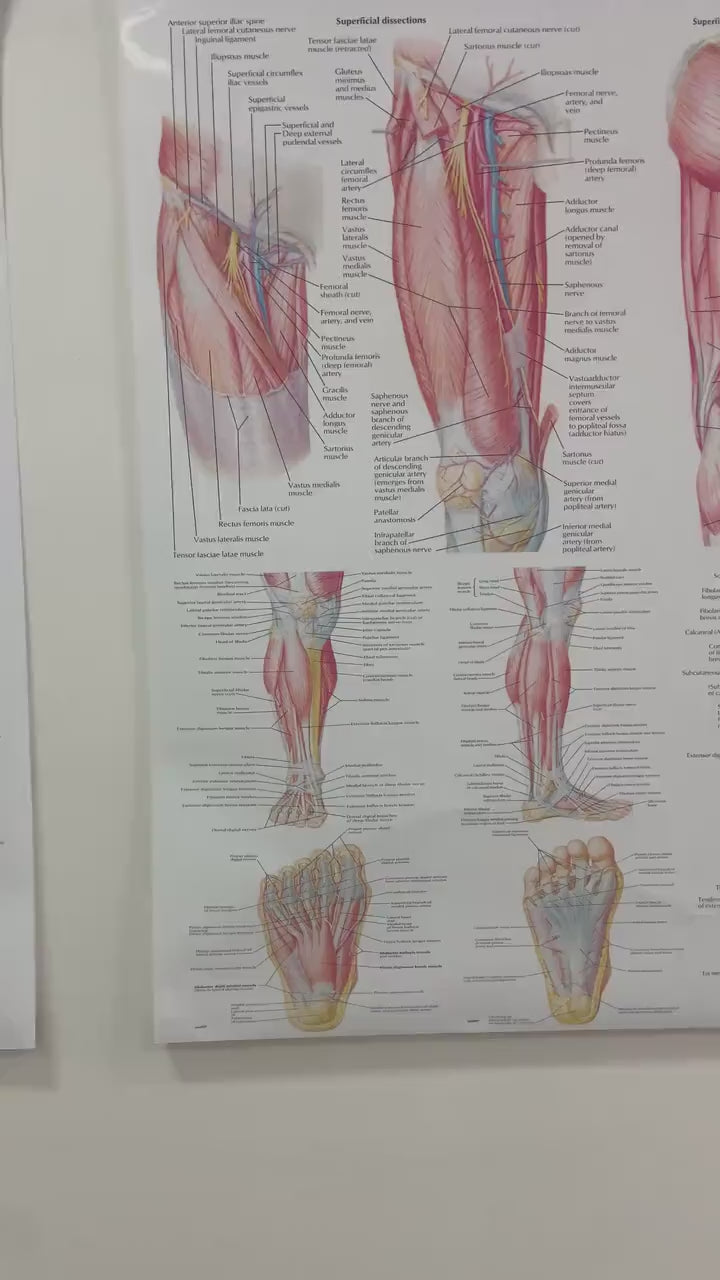 Uncover the intricate anatomy of the human leg with this detailed and high-resolution anatomical poster. Whether you're a medical student, physiotherapist, fitness coach, or educator, this professionally designed chart offers a clear and informative overview of the muscular system of the lower limb.
